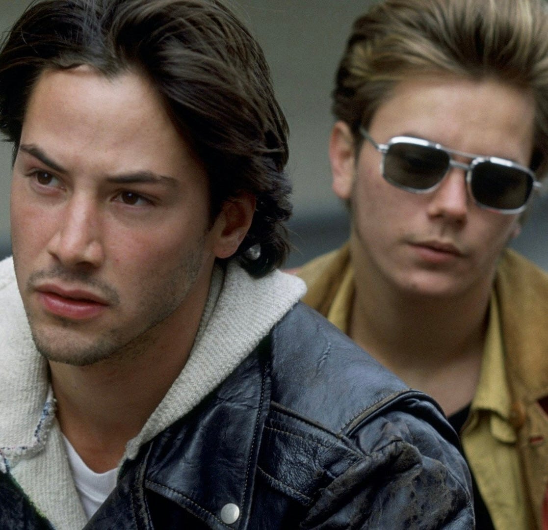 Phoenix’s Mikey is in love with Keanu Reeves’ Scott, son of the mayor, a rich kid slumming it with queer street kids.