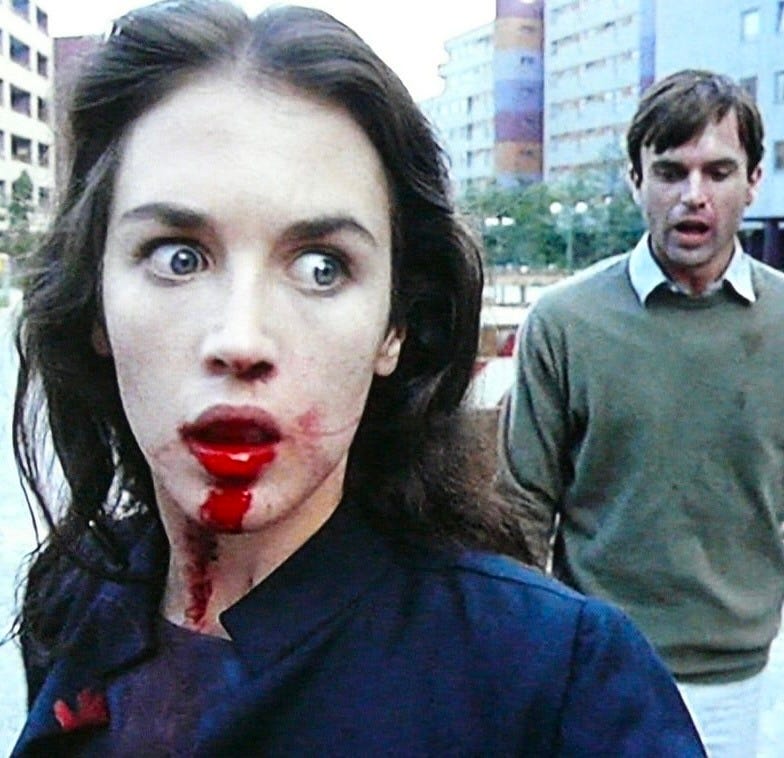 Possession is about people tearing each other apart and being torn apart; it’s about jealousy and repression, and it’s set in West Berlin, a nearly empty city divided by walls and Soviet soldiers. It is a loveless place. A young Sam Neil gives a volcanic performance as Mark, an emotionally volatile spy/cuckold who can’t let go of his cheating wife, played by Isabelle Adjani. Neil’s character is revolting—the worst man alive—but Adjani is the star as a woman whose long-repressed desires ooze out of her and grow tentacles in the shadows. Their poor son.